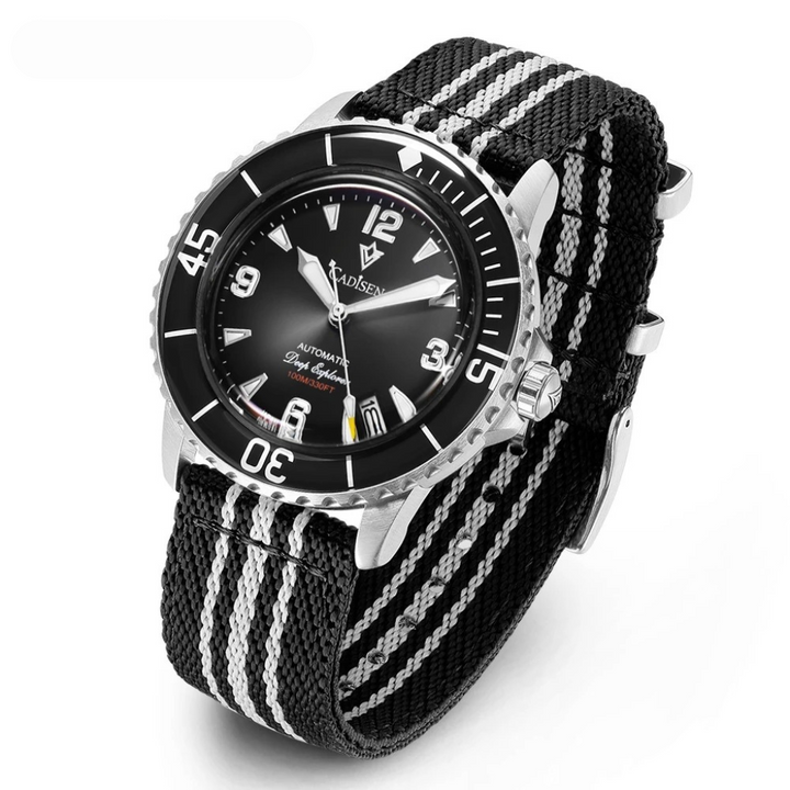 Equipado com o renomado movimento automático Seiko NH35, o Deep Explorer oferece cronometragem precisa sem a necessidade de bateria. Sua pulseira de lona de alta qualidade proporciona conforto e durabilidade, ideal para profissionais exigentes e amantes da relojoaria tradicional.