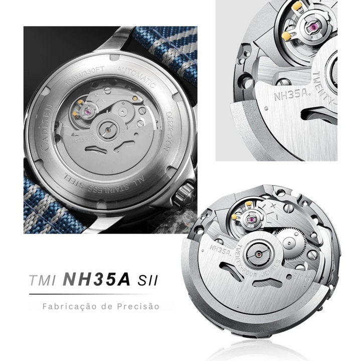 Movimento Automático Seiko NH35 com Pulseira de Lona Premium
